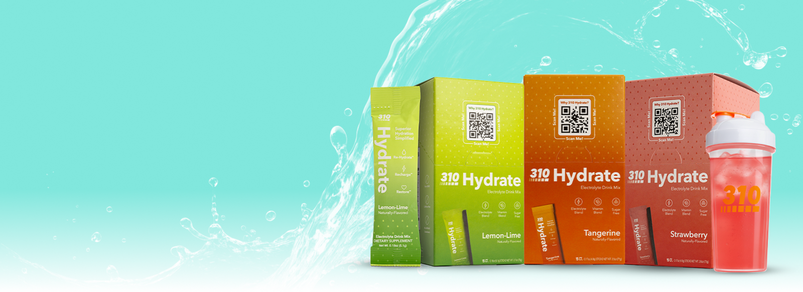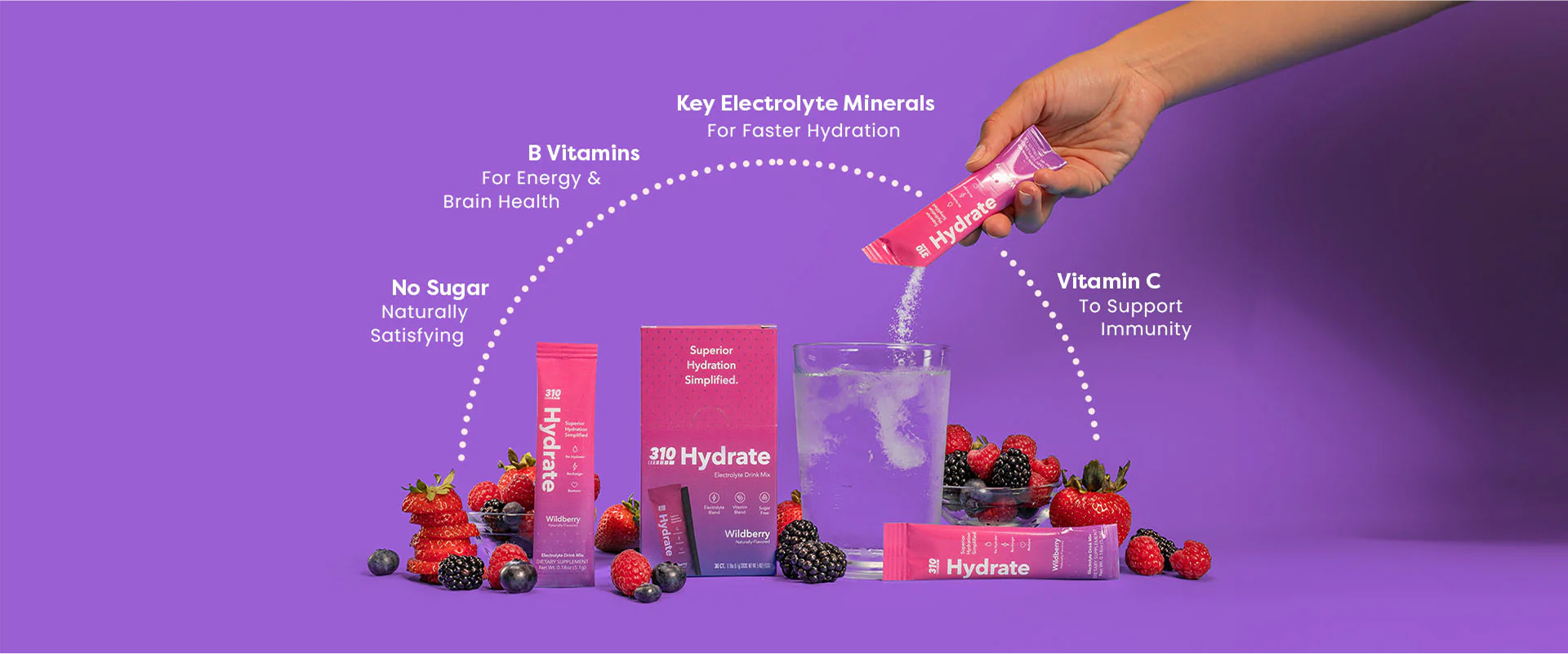 310 Hydrates supercharge water with key vitamins, electrolyte minerals, and bold and exciting flavors, and come in convenient on-the-go packets!