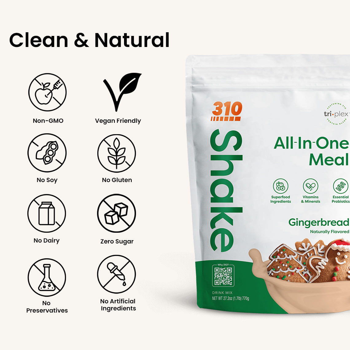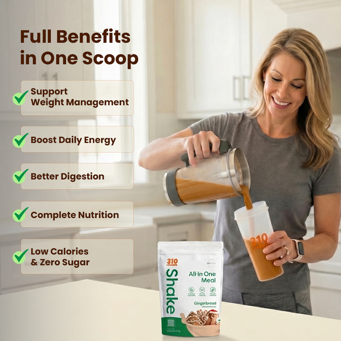 15g plant protein, 50+ vitamins and superfoods, 0g added sugar — in 30 seconds.