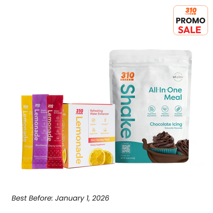Indulge in rich chocolate icing flavor with 15g+ protein per shake plus a 30-count lemonade hydration pack to keep cravings away and hydration on point.