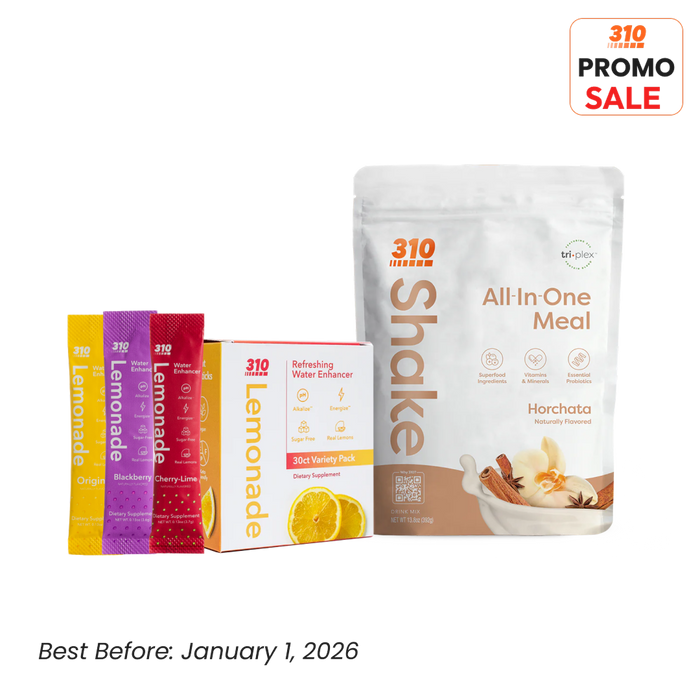 Warm cinnamon-spiced horchata shake and a lemonade hydration pack for the perfect balance of indulgent flavor, clean protein, and electrolyte replenishment.
