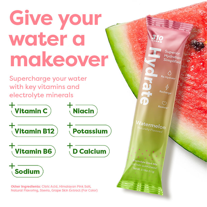 310 Hydrate Electrolytes Powder from 310 Nutrition supercharges your water with key vitamins and electrolyte minerals to amplify your H2O.