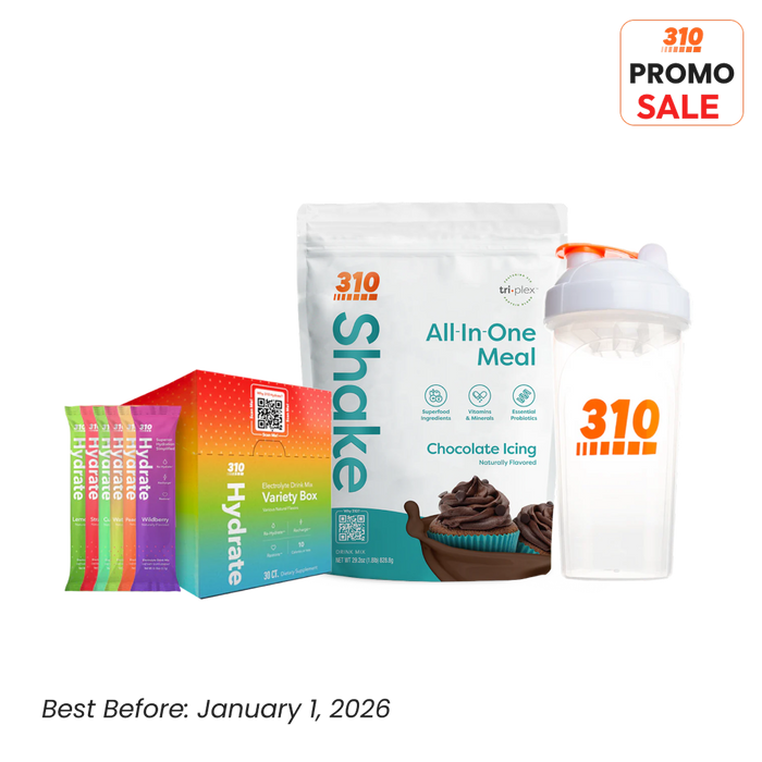 Enjoy rich chocolate icing shake plus 30-count hydrate sticks—protein for muscle support and electrolytes to keep you energized and performing at your peak.