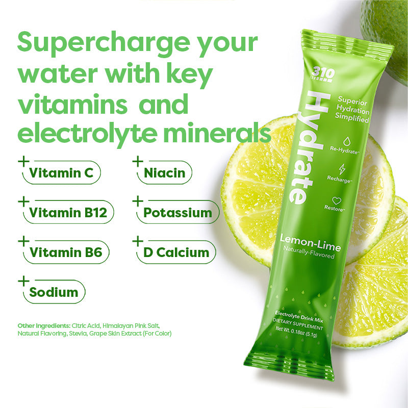 310 Hydrate Electrolytes Powder from 310 Nutrition supercharges your water with key vitamins and electrolyte minerals to amplify your H2O.
