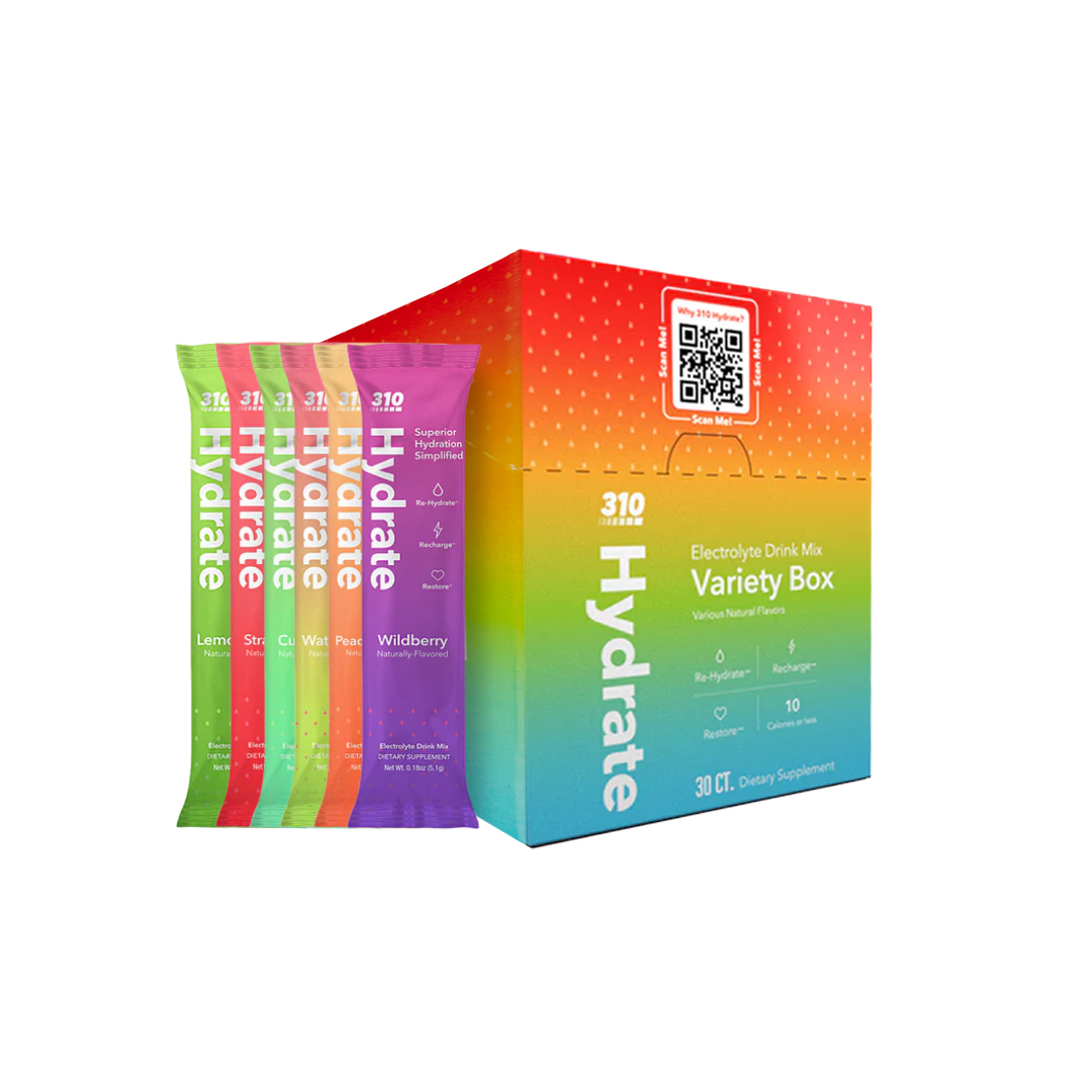 310 Hydrate Electrolyte Packets are sugar free, keto-friendly and come in a variety of exciting flavors to suit your tastes. From cucumber to peach-mango, we’ve got your body and your taste buds covered!